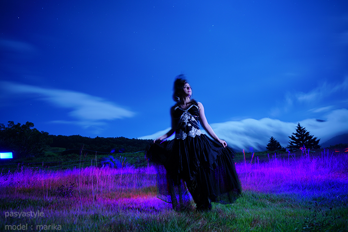その他にもイルコ氏がLEDライトを持って30秒の長時間露光中に草原の中を走り回ったりして撮った写真がコレ↓だったり、超楽しかったです。