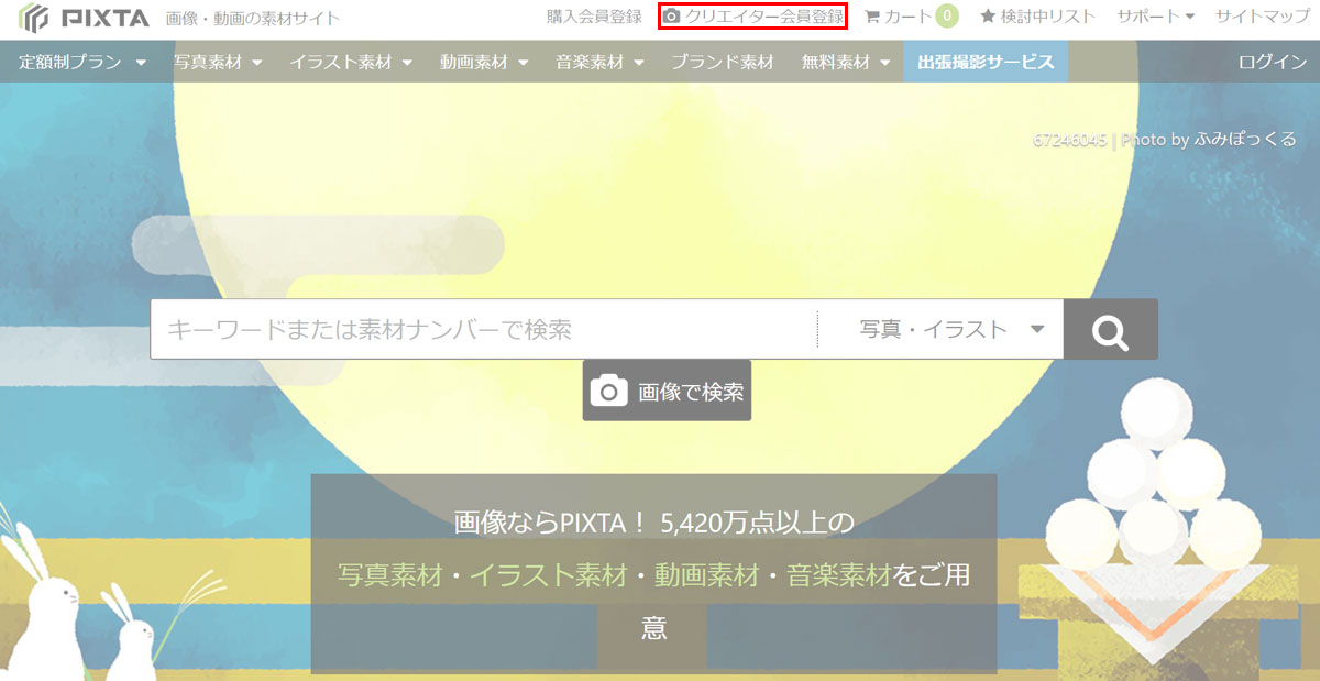 pixtaのトップページから『クリエイター会員登録』をクリックします。