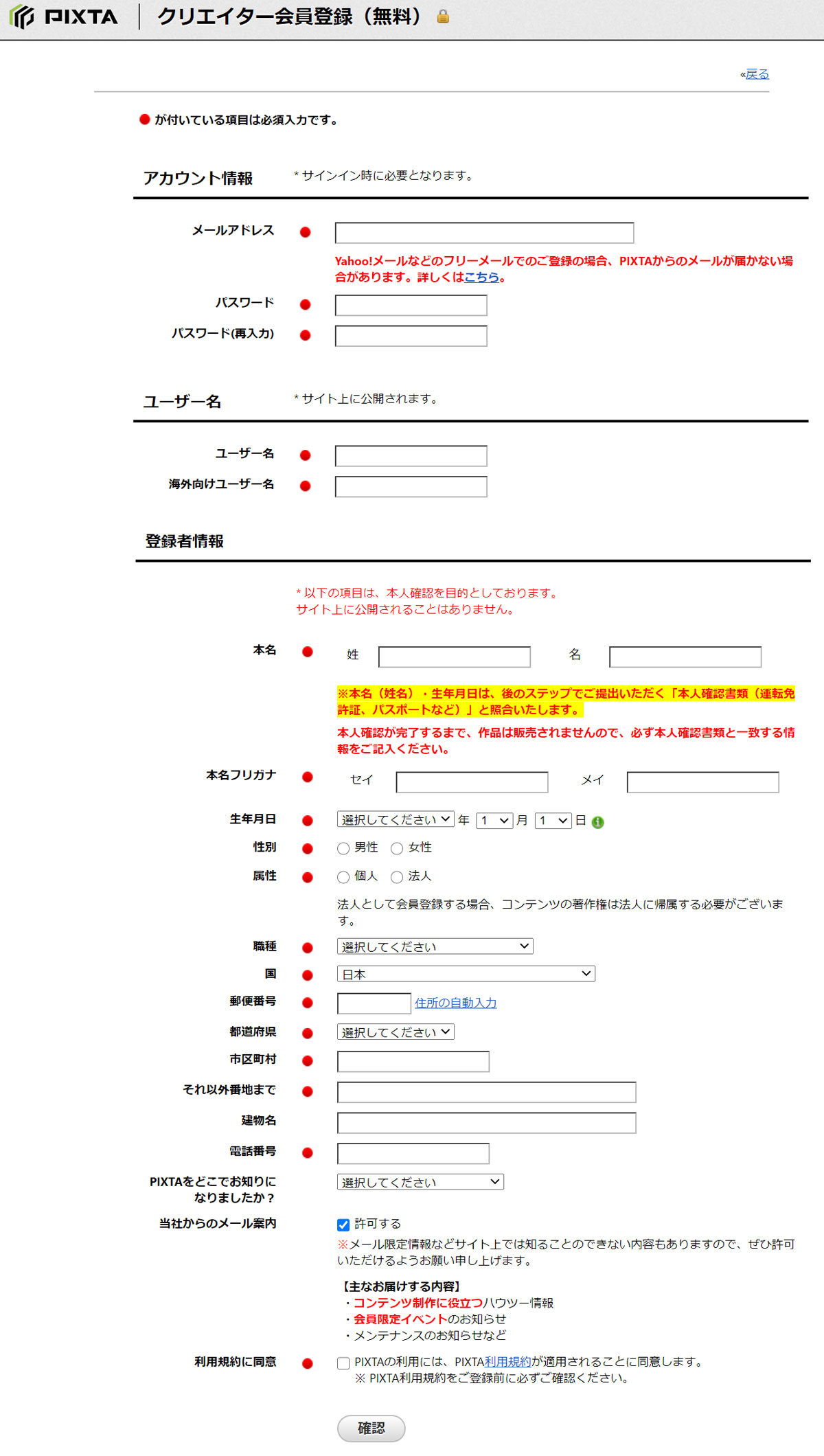 クリエイター会員登録