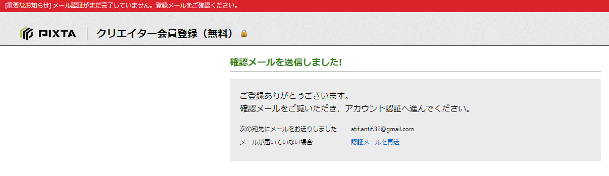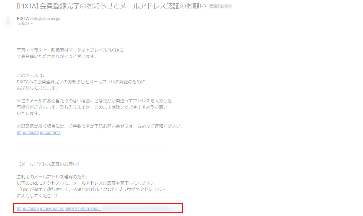 すると、pixtaから確認メールが送信されます。