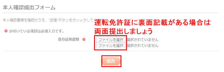 - ブラウザ上での身分証明書の提出(運転免許証など)