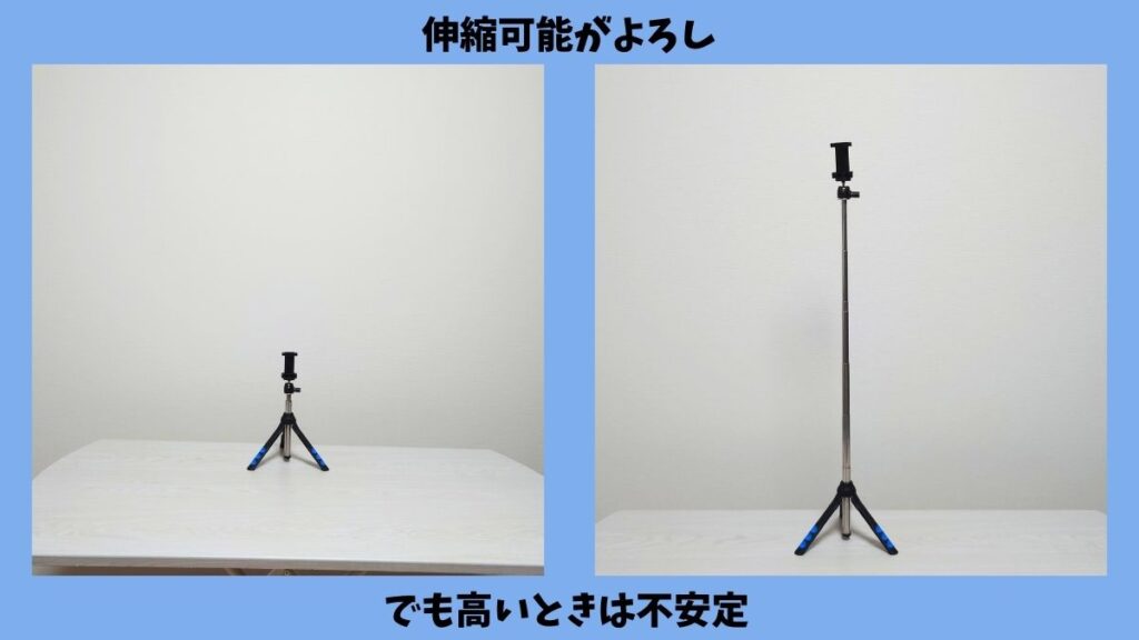 三脚自体が軽めなので安定性に関してはちょっと難ありですが、この価格でこれだけの機能がついてるのでかなりコスパ高いです。