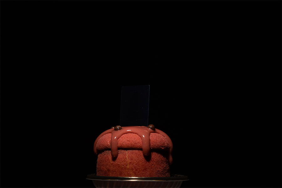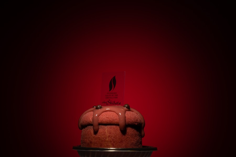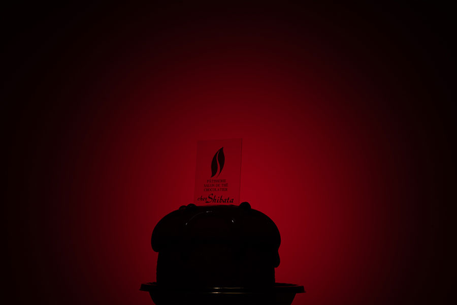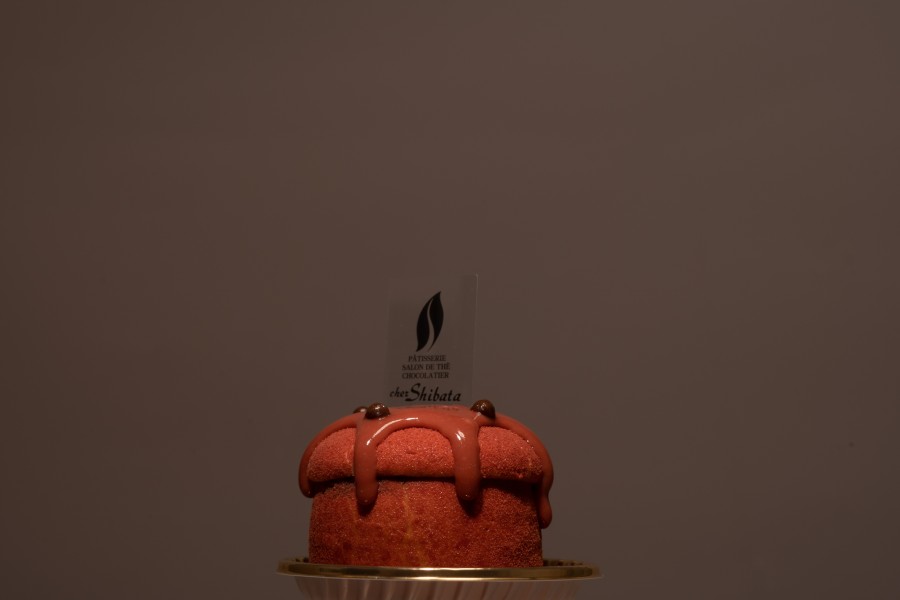 写真では隠れて見えていませんが、アートレと言われる白い背景の後ろにグリッド&カラーフィルター装着した1灯がケーキに向かってセットされています。
