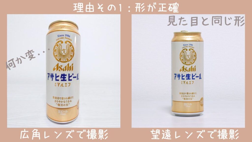 まず一つ目の理由は、望遠レンズを使うことで商品の形をより正確に写すことができる点です。