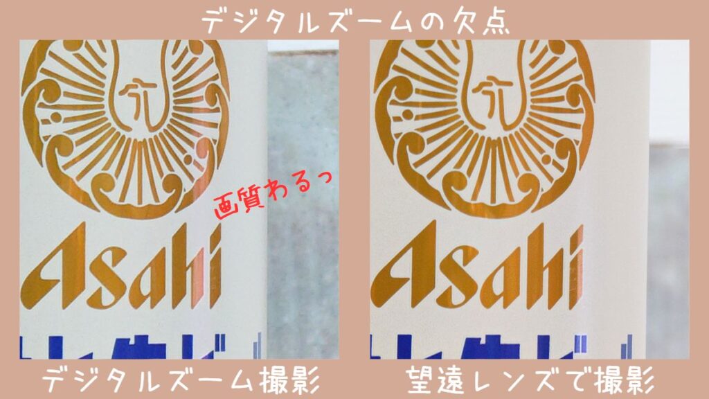 ただし、スマホカメラのズームの方法はデジタルズームなので、画質が多少落ちることも覚悟しなければなりません。